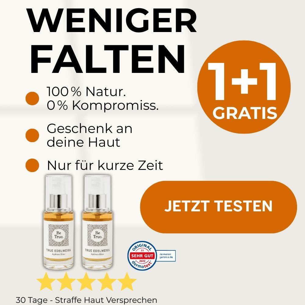 Sichere dir unser hochwirksames Edelweiss Elixir – das Herzstück deiner natürlichen Anti-Aging-Routine – und erhalte eine zweite Flasche gratis! Für kurze Zeit. Für strahlende Haut. Für dich.