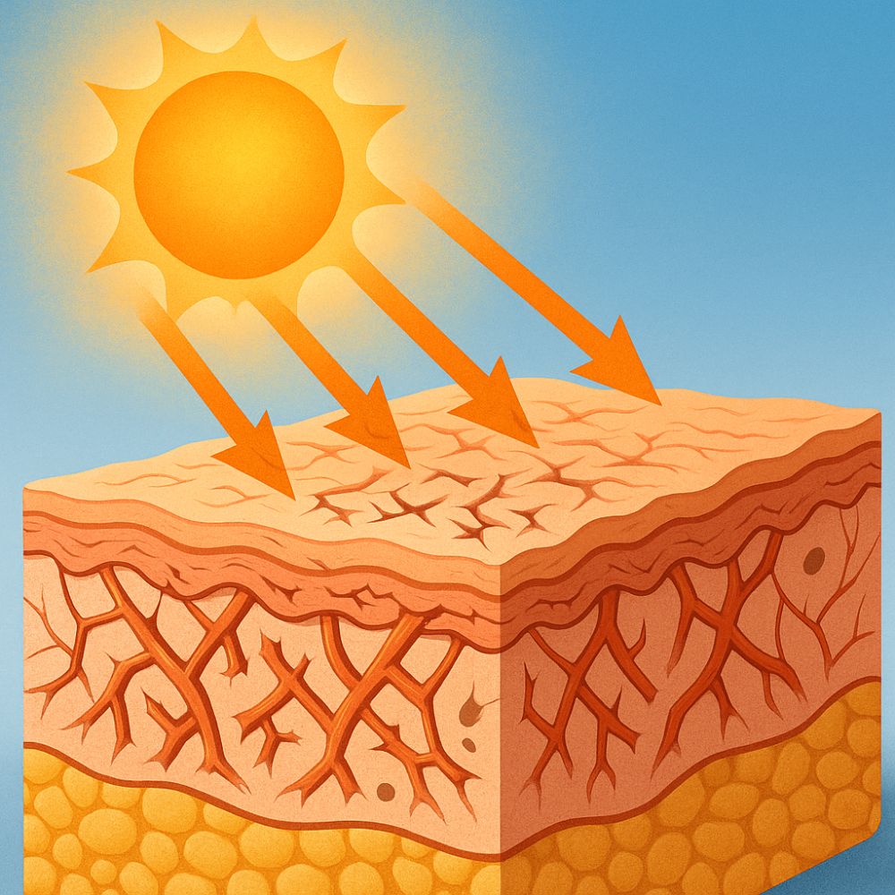 UV-Strahlen zerstören Kollagenfasern in der Haut.